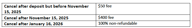 Reservations are not confirmed until both the signed Reservation Form and deposits are received by